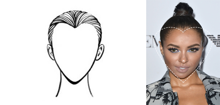 Khuôn mặt trái tim trông giống như quả trứng được đặt ngược đầu, cụ thể phần trán hơi rộng nhưng càng về phía dưới cầm thì gương mặt càng nhỏ gọn hơn.