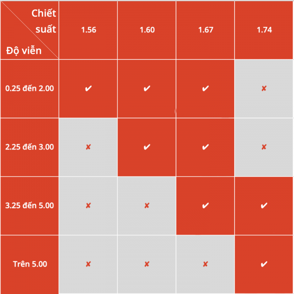4. Bạn nên sử dụng mắt kính chiết suất nào?
