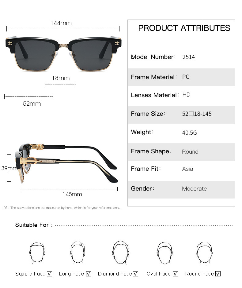 Gọng mắt kính vuông Club Master nam nữ CH 2514 với cấu tạo khung kính kết hợp từ hợp kim, chân kính bên ngoài được bọc 1 lớp nhựa TR90 dẻo, bản lề hợp kim chắc chắn. Gọng có thể thay thế tròng mọi độ kính ạ. Shop cũng chuyên đo mắt miễn phí, cắt tròng lấy liền đó ạ.