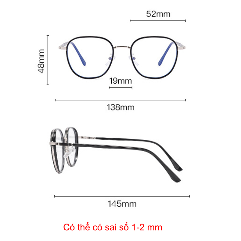 Kính chống ánh sáng xanh vuông nam nữ 4049 với cấu tạo khung kính bằng kim loại chắc chắn được sơn tĩnh điện sáng bóng. Chân kính được bọc thêm 1 lớp nhựa TR90 dẻo trong suốt không bong tróc do mồ hôi, môi trường, không gây kích ứng da. Bản lề kính bằng hợp kim chắc chắn. Tròng kính trang bị sẵn là loại tròng 0 độ chống tia UV, chống ánh sáng xanh nên có thể đeo bảo vệ mắt hoặc thay thế được tròng mọi độ kính các bạn nha.