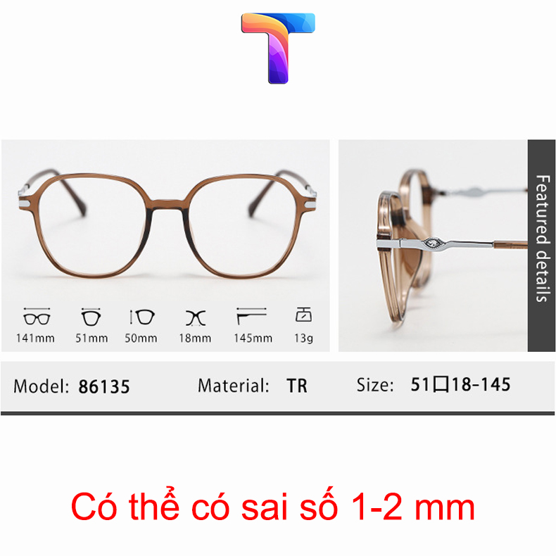 Mắt kính chống ánh sáng xanh vuông nam nữ 86135 với cấu tạo khung kính là sự kết hợp giữa hợp kim + nhựa TR90 dẻo dai. Tròng kính gắn sẵn là tròng 0 độ chống ánh sáng xanh nên có thể đeo thời trang bảo vệ mắt hoặc thay thế tròng kính có độ các bạn nha. Shop cũng chuyên đo mắt miễn phí, cắt tròng lấy liền đó ạ.