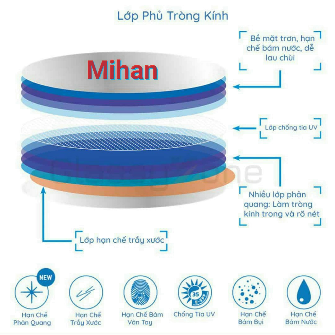 Thứ hai, về lớp phủ tròng kính Chemi: Tròng kính chính hãng Bevis - Mihan trên bề mặt tròng kính hình thành một lớp bảo vệ tự nhiên, khả năng chống sự hình thành tĩnh điện, chống bám bụi trên bề mặt tròng kính, khiến cho việc bảo quản vệ sinh tròng kính dễ dàng hơn.